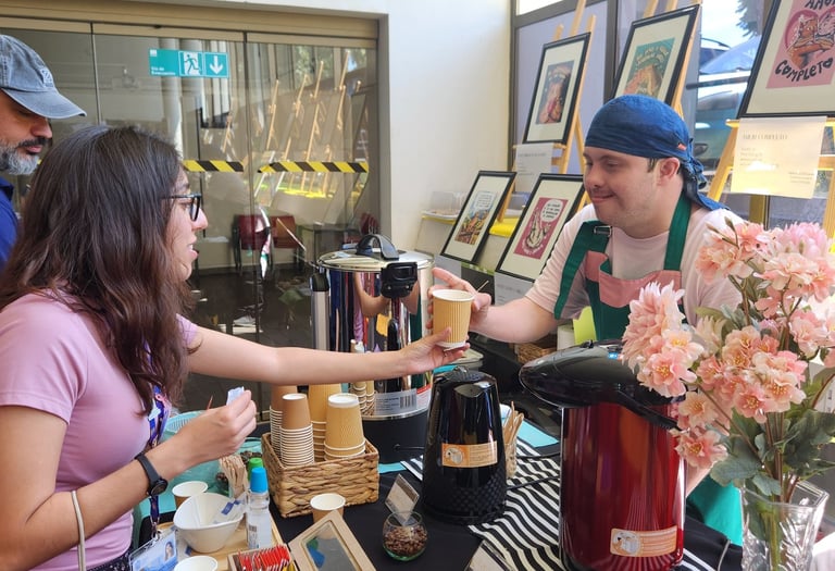 Los jóvenes trabajan en la Cafetería Conectar, desarrollando habilidades laborales y fortaleciendo su autonomía en un entorno real de atención al público, siempre con acompañamiento profesional.